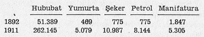 Bu rakamları çoğaltmak mümkündür (1). Meselâ, Ege bölgesi için de daha karakteristik rakamlar verilebilir. Orada artışlar, bilhassa ihracat mallarında görülür.