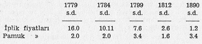 (1) Makinelerin sanayi mamullerinde yarattığı bu ucuzluğu göstermek için, N. Lukin Antonuf’un Batı Avrupa'nın Yeni Tarihi adlı eserinden alman şu rakamları verelim. Bu rakamlara göre, mamul madde * ucuzlamış, hammadde fiyatı artmıştır: