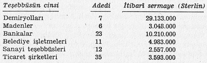 (1) İmparatorluğun son devresinde, Türkiye’de yabancı sefmaye teşekkülleri: