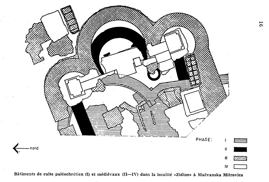 Bâtiments de culte paléochrétien (I) et médiévaux (II—IV) dans la localité »Zidine« à Mačvanska Mitrovica