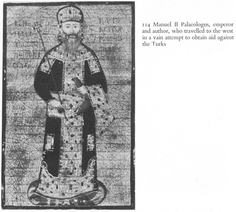 114 Manuel II Palaeologus, emperor and author, who travelled to the west in a vain attempt to obtain aid against the Turks