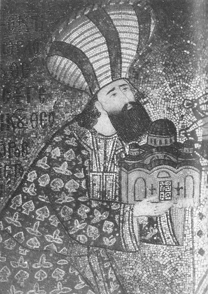 119 Theodore Metochites, humanist writer and bureaucrat, shown holding the Church of Kariye Jami, which was decorated under his patronage