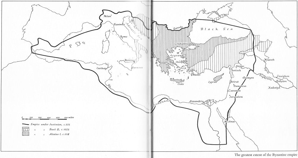 The greatest extent of the Byzantine empire