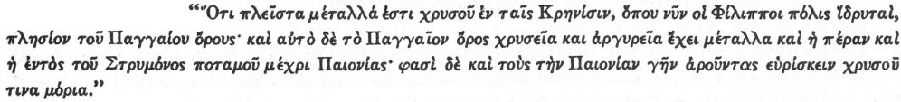 11. Strabo, Geography, ed. H. L. Jones, vol. V (1928) (hereafter Strabo, with vol. and page numbers), p. 328; Μέταλλα δ᾿ἐν μὲν τῆ Συσπιρίτιδί ἐστι χρυσοῦ κατὰ τὰ Κάβαλλα.
