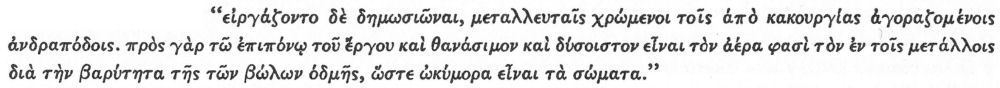 6. Scholium, y. 376 ; “Δυνατὸν γὰρ καὶ ἰδιώτης μέταλλα κριταρίου καὶ ἀργύρου, καὶ τῶν παραπλησίων ἔχειν.”