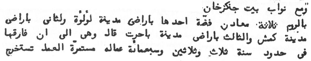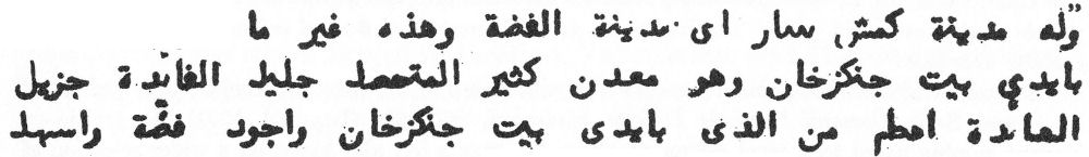 This passage refers to the city of Luluh in southern Anatolia near the modern Ulukishla, to Gümüsh Hane in northern Anatolia (mentioned by Ibn Battuta), and to Paipurt (mentioned by Marco Polo). Then al-Umari in his description of that part of Anatolia, in the west, which was not directly under the rule of the Mongols, describes an important silver mine in the principality or beylik of Germian (the regions about Cotyeion-Kutahya).