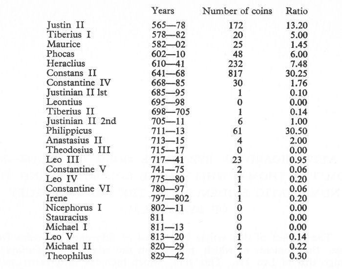 The methodology of Kazhdan, has, however, drawn sharp criticism on two grounds. First, Ostrogorsky has observed that the coin finds in Greece and Asia Minor, as well as the material from Wroth and Tolstoy, consist very largely of bronze coinage. This was completely the case of the coins from the Athenian Agora and also of the Corinthian coins from the period under discussion. Therefore all that can be concluded from this evidence is that beginning with the mid-seventh century there was a drastic reduction in the bronze coinage, but not necessarily in the gold coinage. A really significant analysis of the coinage, Ostrogorsky went on to point out, should consider the gold issues separately from those in bronze, for it is the gold coinage which was more important in the question of urban continuity and commercial activity [5]. Grierson made a second observation concerning the analysis of collection catalogues. These catalogues do not reflect the volume of coin minted, but rather the taste of the collectors of coins [6].