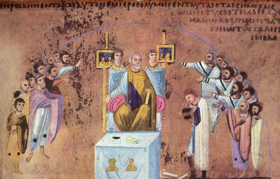 Die Übertragung der eucharistischen Gaben von der Prothesis durch die nördliche Tür des Altarraumes zum Gemeinderaum und durch die mittlere Tür zum Altarraum, die dieser Liturgie zugrunde liegt, ist bereits vom Jahre 500 an feststellbar, das würde also mit der Entstehung des erweiterten Altarraumes in der Terrassenbasilika in Philippi durchaus übereinstimmen.