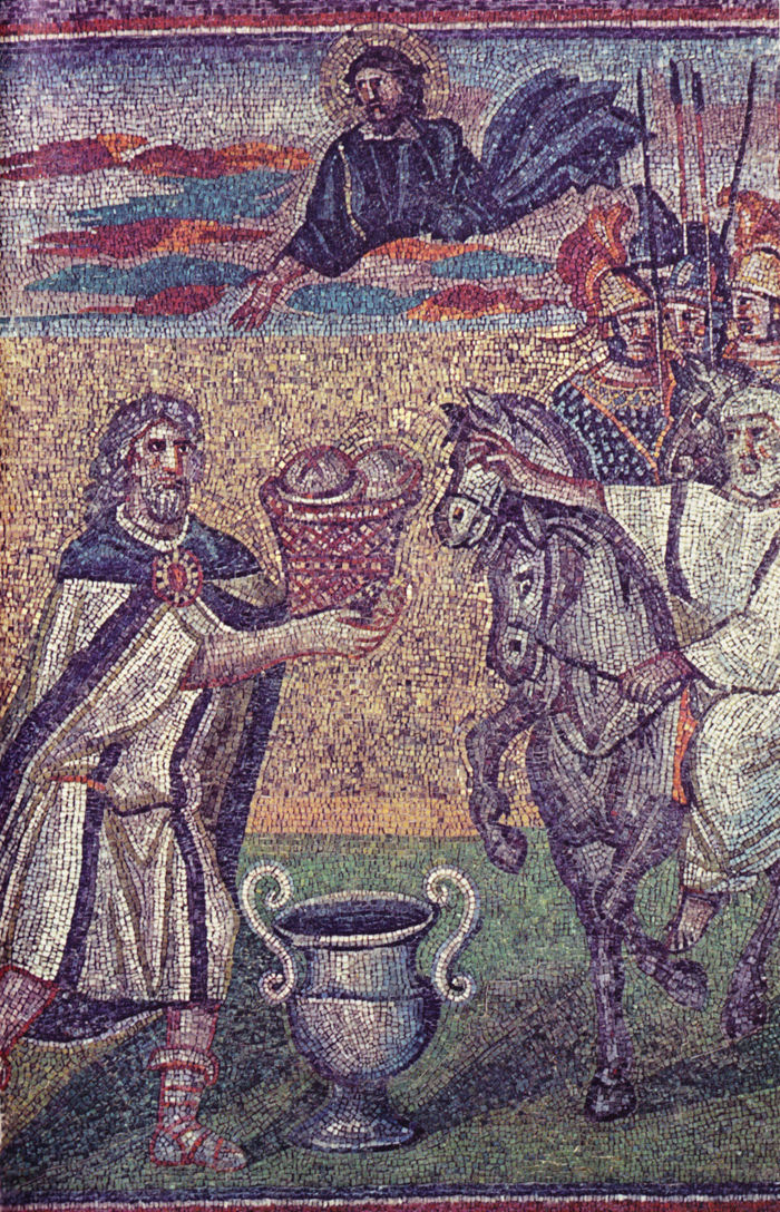 Farbtafel III Rom. Santa Maria Maggiore. Aus dem Mosaikfries des Langhauses. Geschenk Melchisedechs an Abraham. 4. Jh.