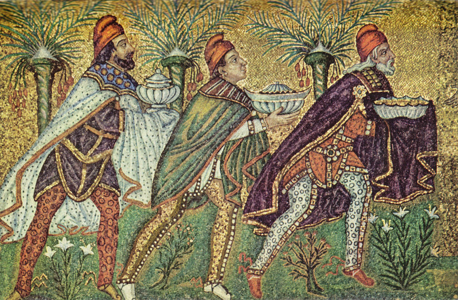 Farbtafel VII Ravenna. Sant' Apollinare Nuovo. Unterster Mosaikfries des Langhauses. Die Drei Magier. Abänderungen des alten Programmes nach der Übernahme durch die Orthodoxen um 560