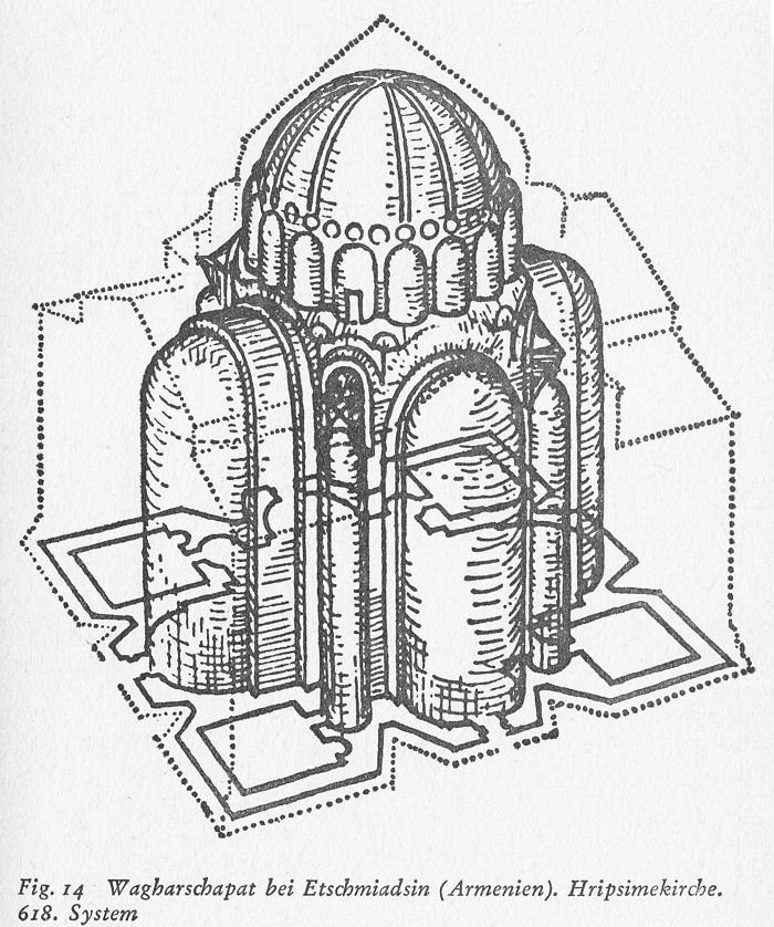 Fig. 14 Wagharschapat bei Etschmiadsin (Armenien). Hripsimekirche 618. System