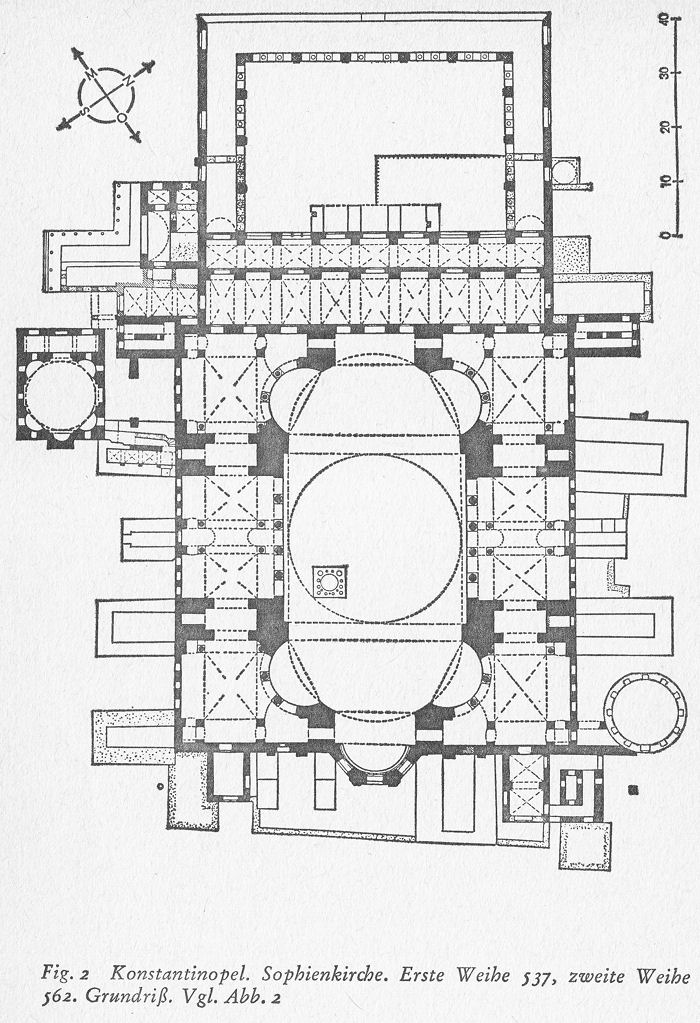 Fig. 2 Konstantinopel. Sophienkirche. Erste Weihe 537, zweite Weihe 562. Grundriß. Vgl. Abb. 2