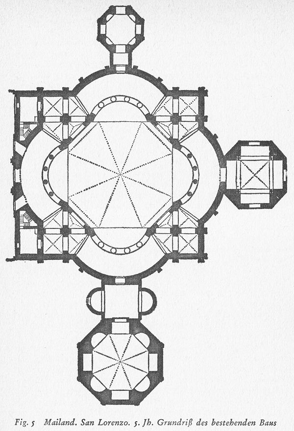 Fig. 5 Mailand. San Lorenzo. 5. Jh. Grundriß des bestehenden Baus