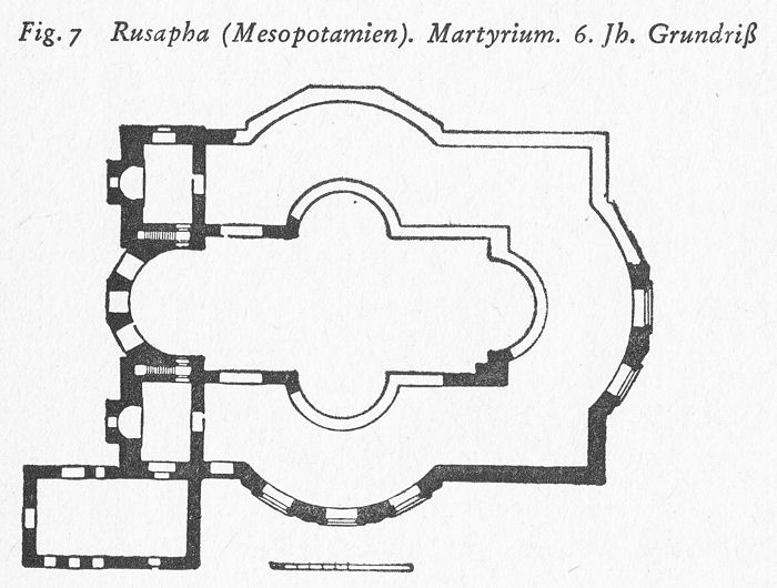 Fig. 7 Rusapha (Mesopotamien). Martyrium. 6. Jh. Grundriß