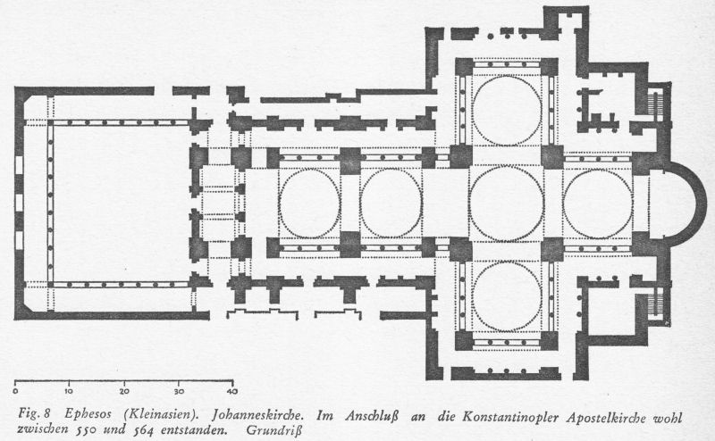 Fig. 8 Ephesos (Kleinasien). Johanneskirche. Im Anschluß an die Konstantinopler Apostelkirche wohl zwischen 550 und 564 entstanden. Grundriß