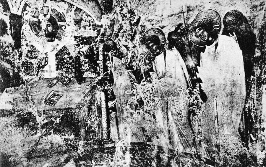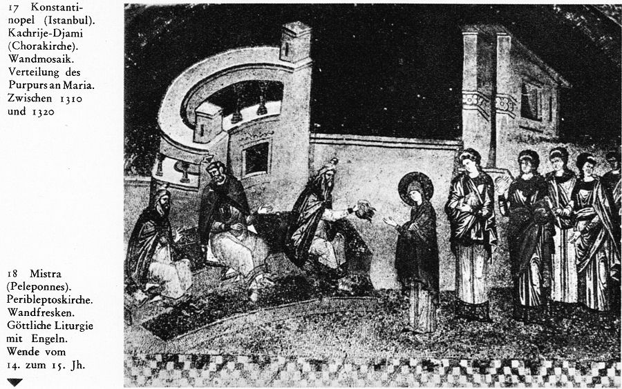 18. Mistra (Peleponnes). Peribleptoskirche. Wandfresken. Göttliche Liturgie mit Engeln. Wende vom 14. zum 15. Jh.