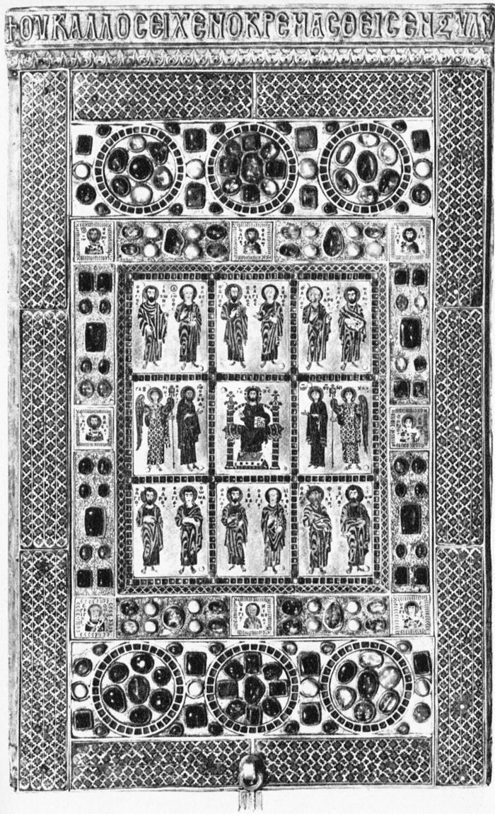 19. Evangelien-Buchdeckel. Venedig. 9. Jh. Email cloisonné, Perlen und Edelsteine. 16 X 17,5 cm