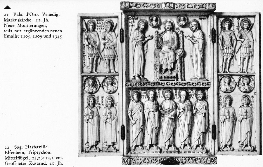 22. Sog. Harbaville Elfenbein, Triptychon. Mittelflügel, 24,2 X 14,2 cm. Geöffneter Zustand. 10. Jh.