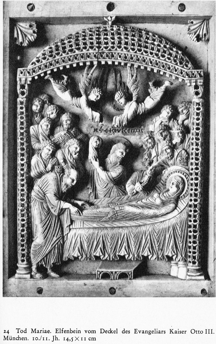 24. Tod Mariae. Elfenbein vom Deckel des Evangeliars Kaiser Otto III. München. 10./11. Jh. 14,5 X 11cm