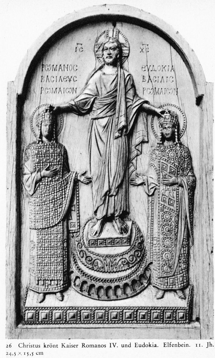 26. Christus krönt Kaiser Romanos IV. und Eudokia. Elfenbein. 11. Jh. 24,5 X 15,5 cm
