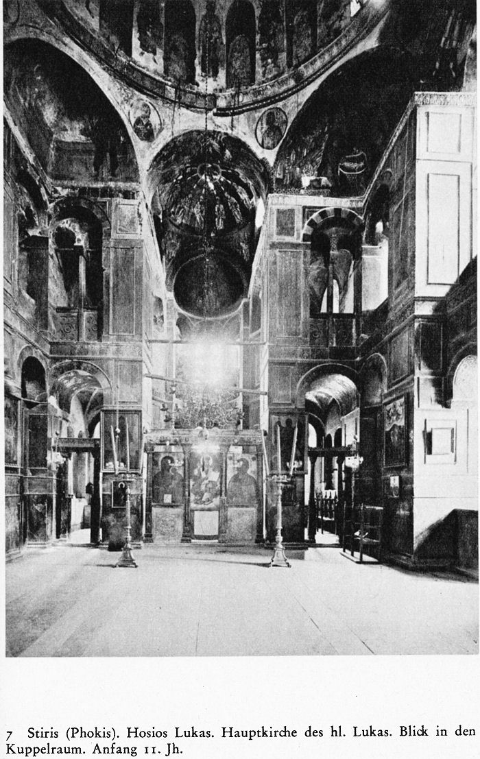7. Stiris (Phokis). Hosios Lukas. Hauptkirdie des hl. Lukas. Blick in den Kuppelraum. Anfang 11. Jh.