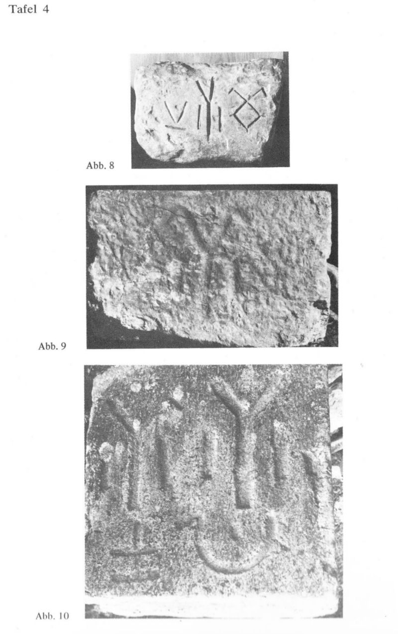 Abb. 7. Protobulgarische Zeichen aus Păcuiul lui Soare (Nach P. Diaconu)