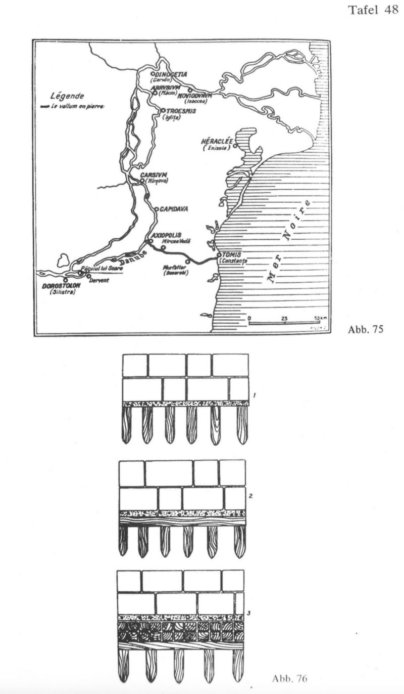 Abb. 75. Karte der Dobrudža mit Păcuiul lui Soare und dem Steinwall zwischen Černa voda und Constanta.