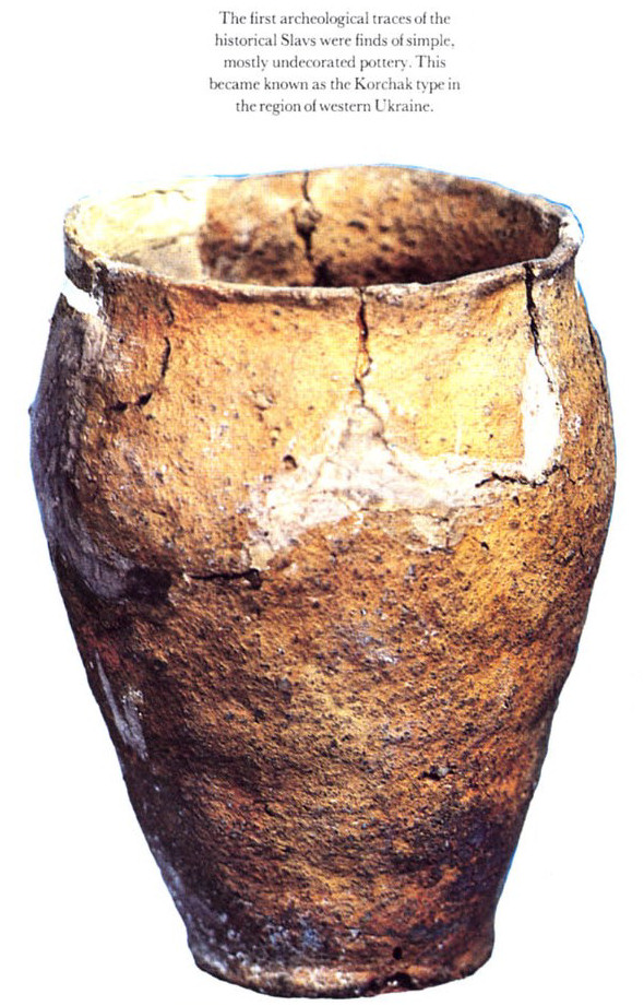 The first archeological traces of the historical Slavs were finds of simple, mostly undecorated pottery. This became known as the Korchak type in the region of western Ukraine.