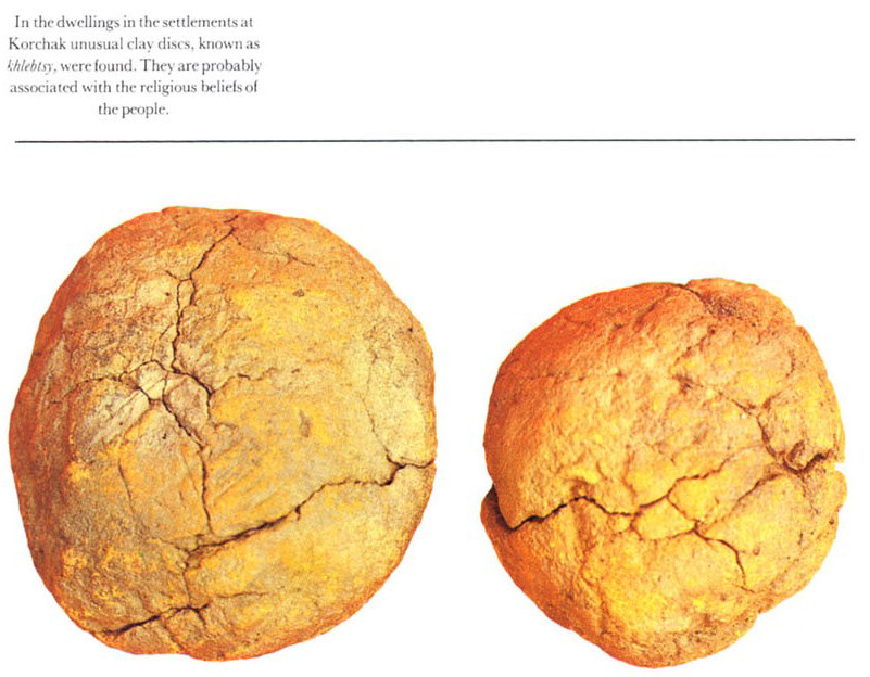 In the dwellings in the settlements at Korchak unusual clay discs, known as khlebtsy, were found. They are probably associated with the religious beliefs of the people.
