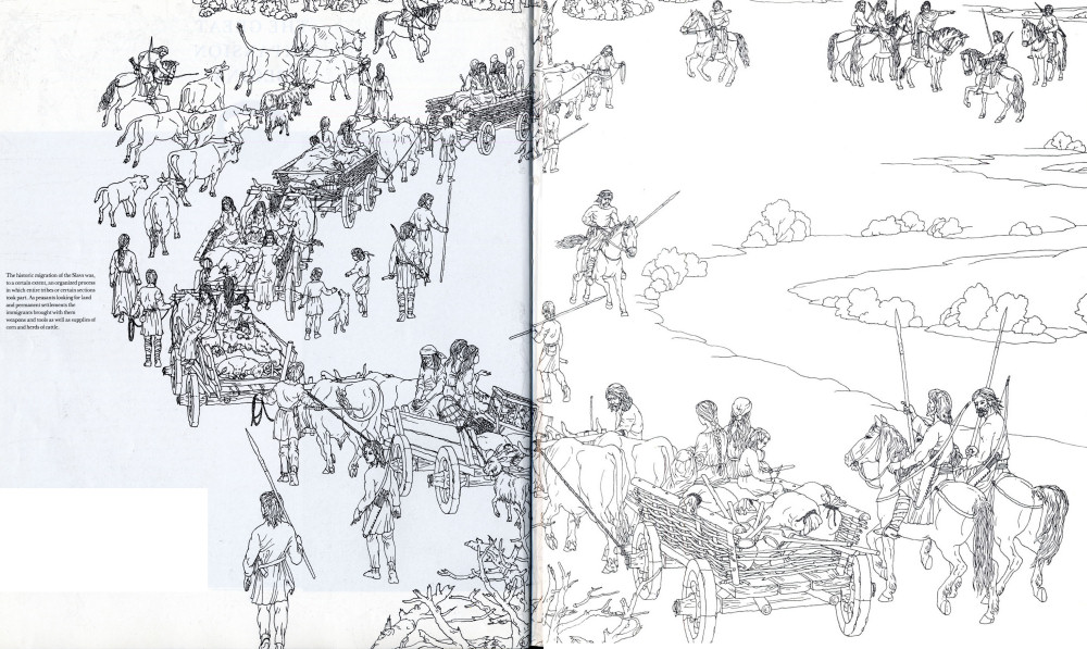The historic migration of the Slavs was, to a certain extent, an organized process in which entire tribes or certain sections took part. As peasants looking for land and permanent settlements the immigrants brought with them weapons and tools as well as supplies of corn and herds of cattle.