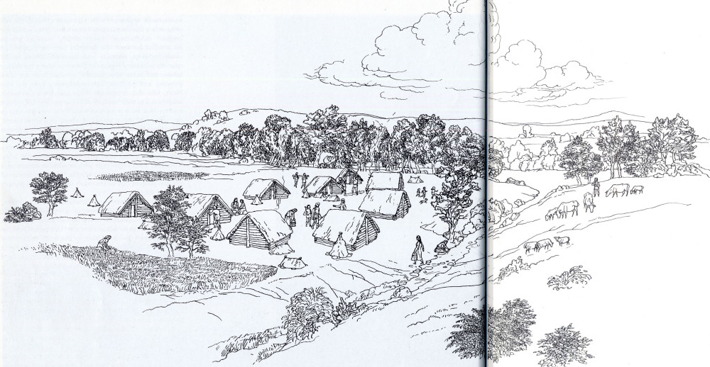 The settlement at Březno comprised a group of seven to ten semi-subterranean dwellings, forming a circle round an open space. Corn and other foodstuffs were kept in covered pits which served as stores.