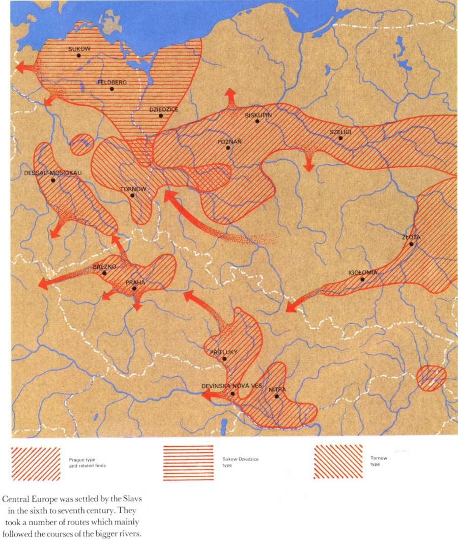 Central Europe was settled by the Slavs in the sixth to seventh century. They took a number of routes which mainly followed the courses of the bigger rivers.