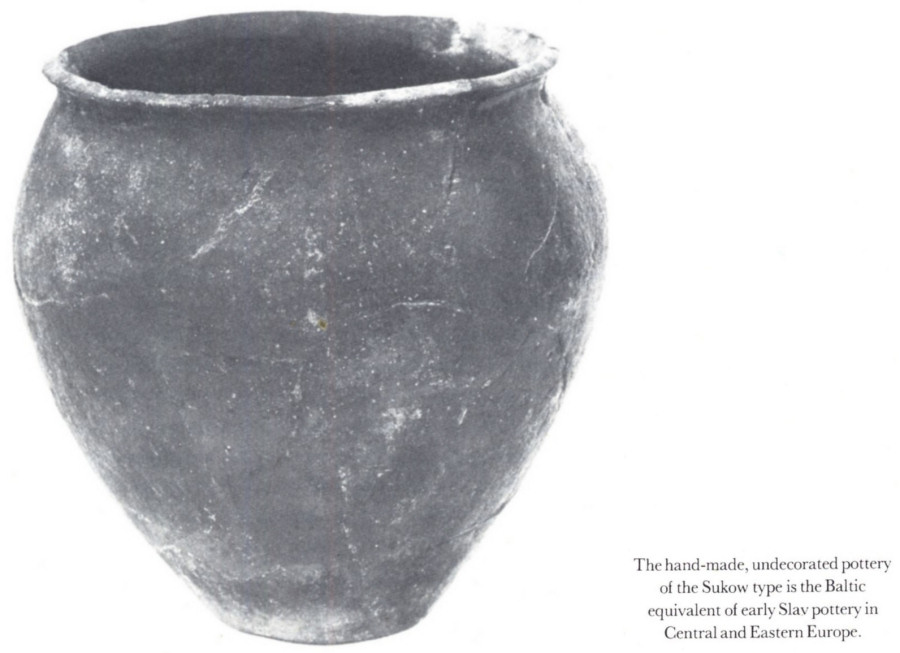 The hand-made, undecorated pottery of the Sukow type is the Baltic equivalent of early Slav pottery in Central and Eastern Europe