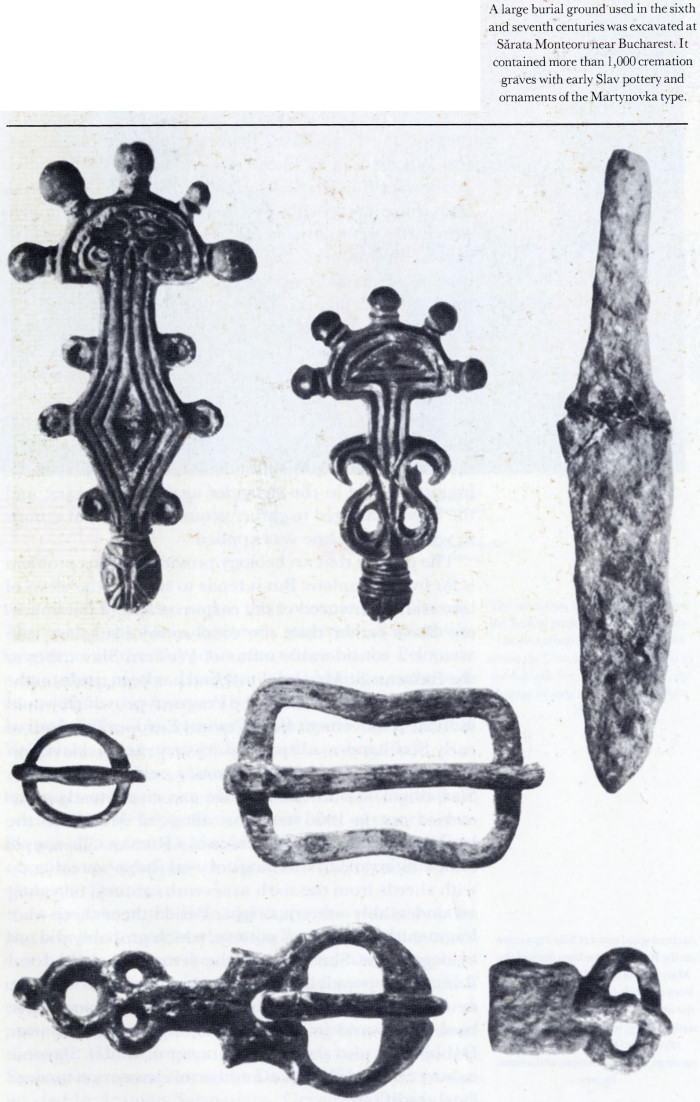 A large burial ground used in the sixth and seventh centuries was excavated at Sǎrata Monteoru near Bucharest. It contained more than 1,000 cremation graves with early Slav pottery and ornaments of the Martynovka type.