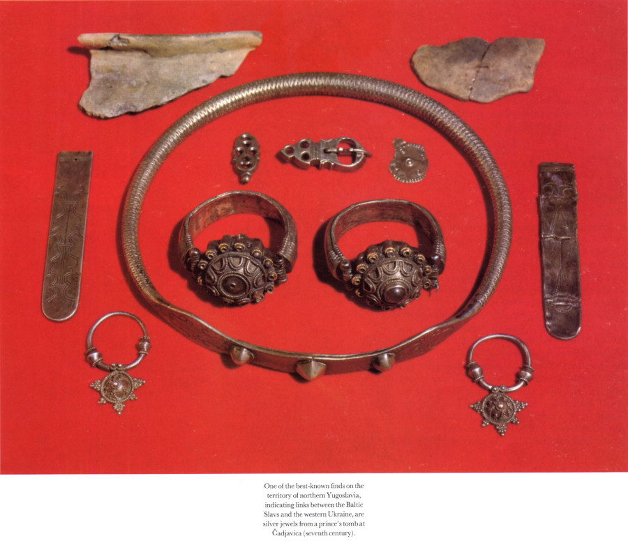 One of the best-known finds on the territory of northern Yugoslavia, indicating links between the Baltic Slavs and the western Ukraine, are silver jewels from a prince's tomb at Čadjavica (seventh century).