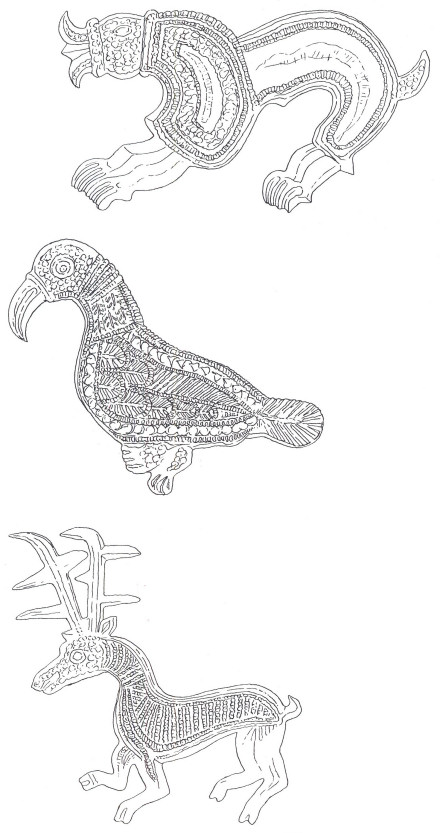 Strong relations to the southern Russian region are shown by finds of the Martynovka type, ornaments and jewels that are typical of local development in the sixth century on the territory of the western Ukraine. They include, first of all, ray-shaped clasps with masks, star-shaped ear-rings, metal figurines of fantastic animals or human figures, and even matrixes for making those metal ornaments. They are widespread in all places to which the Slavs penetrated in their expansion through the Balkans. In Yugoslavia they are concentrated in the Danube region.