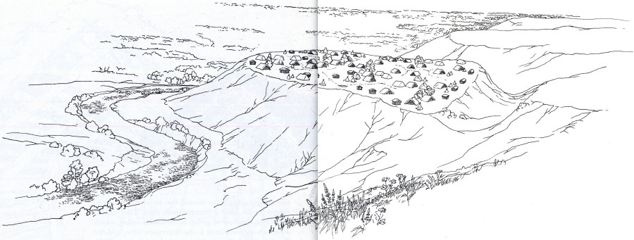 The Slav settlement was likewise moved after a time, probably as a consequence of a cyclical, partially migratory agriculture in which certain areas of the tilled land were left to lie fallow after a certain period and the dwellings were moved closer to the fields then under cultivation. Seven to ten houses were grouped in a circle around an open central space (each settlement had roughly forty to sixty inhabitants), and all around were pits for supplies — deep pits of a circular shape that were used for underground grain storage. The corn found here, mainly wheat but also barley, rye, oats, millet and even peas, lentils and hemp, is proof of a more advanced stage of agricultural technique than the original inhabitants possessed.