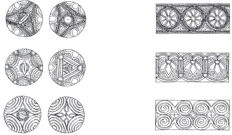 There were graves all around the church, often with rich offerings of ornaments and weapons, as proof of the high cultural level of the Great Moravian craftsmen, mainly goldsmiths. In its earlier phase, called the BLATNICA-MIKULČICE GROUP, which developed in the first half of the ninth century, it linked late Avar tradition with western Carolingian influences in a creative manner. In the later phase, the influence of Byzantine worksmanship became stronger as a result of the contacts that Rastislav established. But in their workshops the Old Moravians re-worked all these foreign stimuli into a style of their own, which combined influences from South-Eastern and Western Europe.