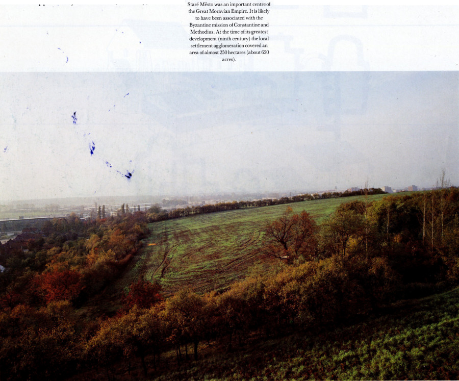 Staré Město was an important centre of the Great Moravian Empire. It is likely to have been associated with the Byzantine mission of Constantine and Methodius. At the time ofits greatest development (ninth century) the local settlement agglomeration covered an area of almost 250 hectares (about 620 acres).