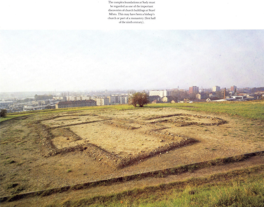 The complex foundations at Sady must be regarded as one of the important discoveries of church buildings at Staré Město. This may have been a bishop's church or part of a monastery (first half of the ninth century).
