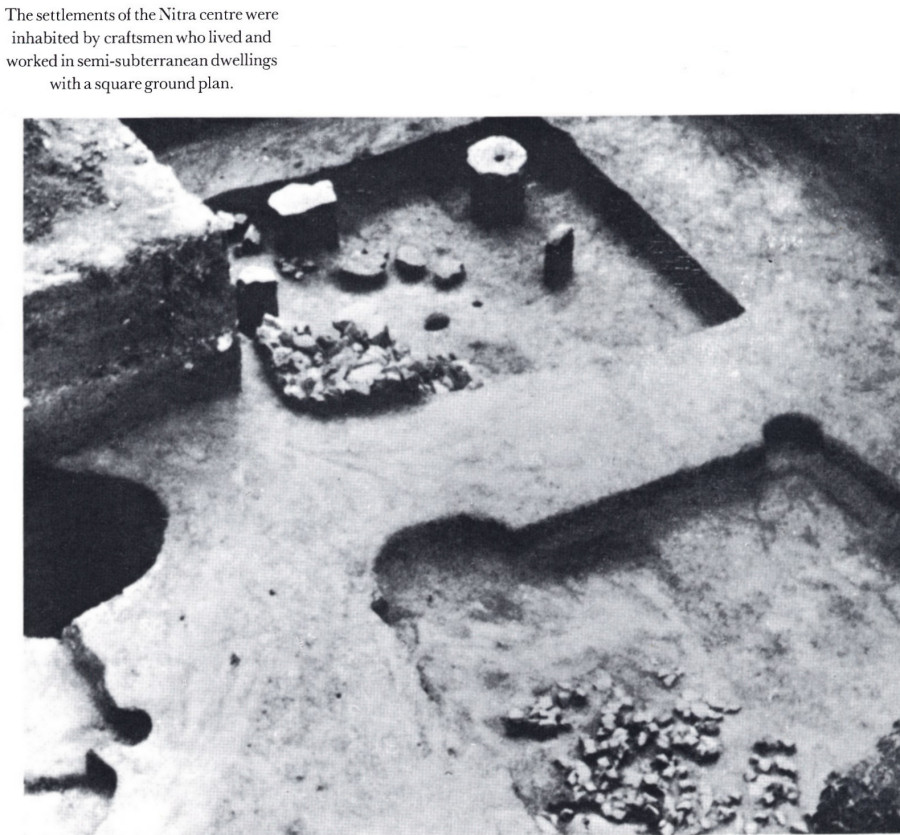 The settlements of the Nitra centre were inhabited by craftsmen who lived and worked in semi-subterranean dwellings with a square ground plan.