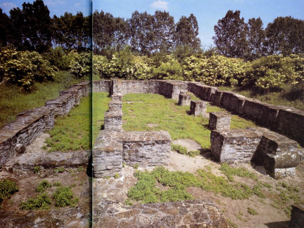 A basilica with nave and aisles stood in the eleventh century on Récéskút island, which formed part of Mosapurc Below it the remains of a wooden church from the time of Pribina have been found.
