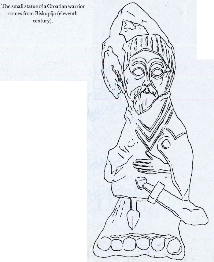 The small statue of a Croatian warrior comes from Biskupija (eleventh century).