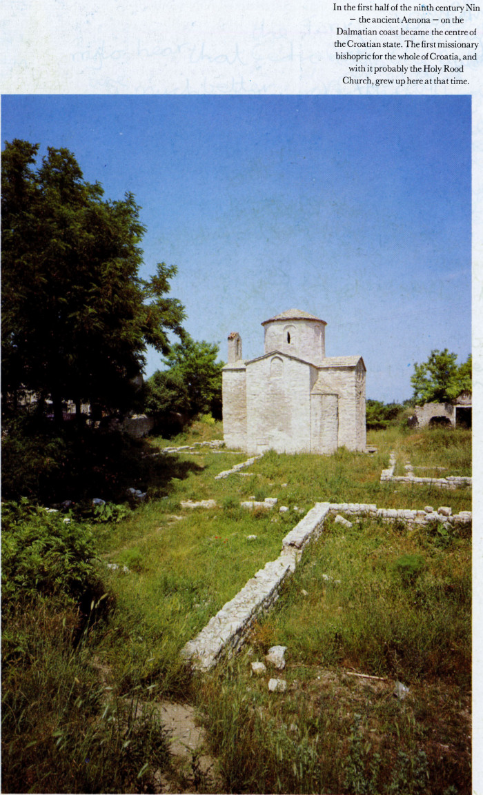 In the first half of the ninth century Nin — the ancient Aenona — on the Dalmatian coast became the centre of the Croatian state. The first missionary bishopric for the whole of Croatia, and with it probably the Holy Rood Church, grew up here at that time.