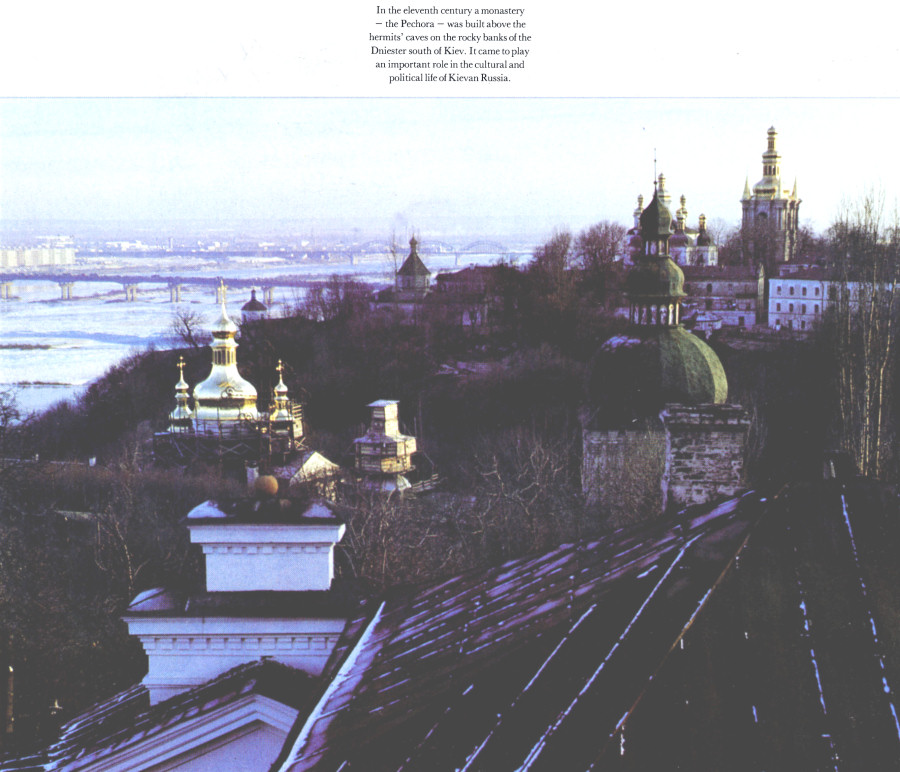 In the eleventh century a monastery — the Pechora — was built above the hermits' caves on the rocky banks of the Dniester south of Kiev. It came to play an important role in the cultural and political life of Kievan Russia.