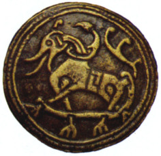 The Slav tribes had a good deal of contact with the Scandinavian region, both in the form of trade and in warfare. This is proved by a bronze disc with a bas-relief of a mythical beast, done in the Jelling style (Carwitz, eleventh century).