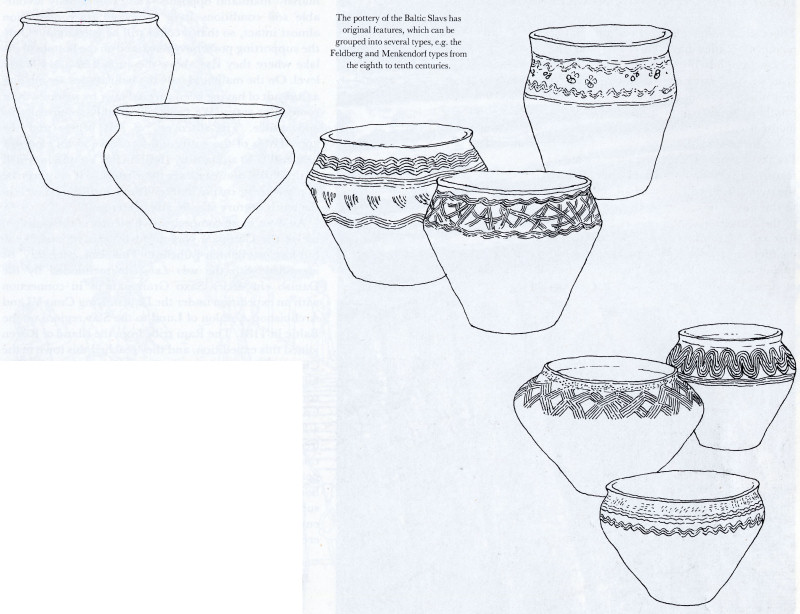 The pottery of the Baltic Slavs has original features, which can be grouped into several types, e.g. the Feldberg and Menkendorf types from the eighth to tenth centuries.