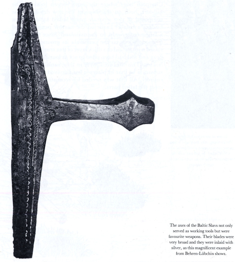 The axes of the Baltic Slavs not only served as working tools but were favourite weapons. Their blades were very broad and they were inlaid with silver, as this magnificent example from Behren-Lübchin shows.
