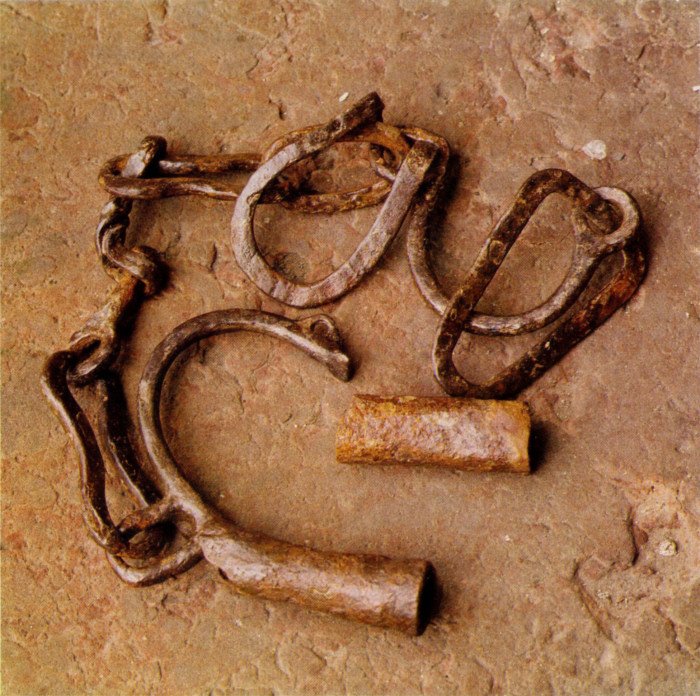 Iron shackles with a lock, found at Neu-Nieköhr hill-fort, were used to bind prisoners or slaves (eleventh to twelfth century).