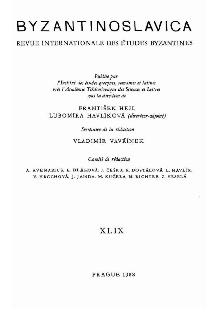 Byzantinoslavica vol. 49 (1988) p. 185-199 Prague 1988